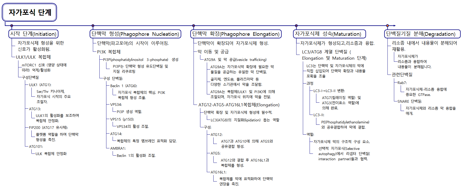 - 시작 단계(Initiation): 자가포식체 형성을 위한 신호가 활성화됨.