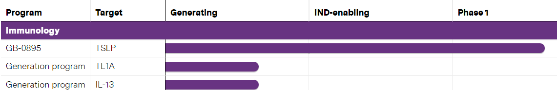 Generate: Biomeidicine (GB-0895) : Flagship 프로그램으로 성장하고 있는 이 AI 기반 신약개발사는 작년 2023년 9월 series C로 $273 million 을 투자 유치하고 역시 TSLP 항체를 중증 천식 치료제로 임상 2상 연구 진입한다고 나온 바 있습니다. 이 물질도 3주~6주 간격으로 1회 투여하는 방식을 스터디 하고 있다고 합니다.