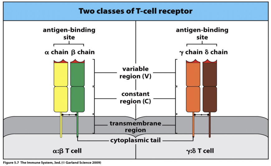 가변영역은 항원결합 부위를 가지고 있고 각각에 대해 동일한 3개의 HyperVariable Loops가 있으며 이는 베타 체인뿐만 아니라 알파 체인에도 적용됩니다.