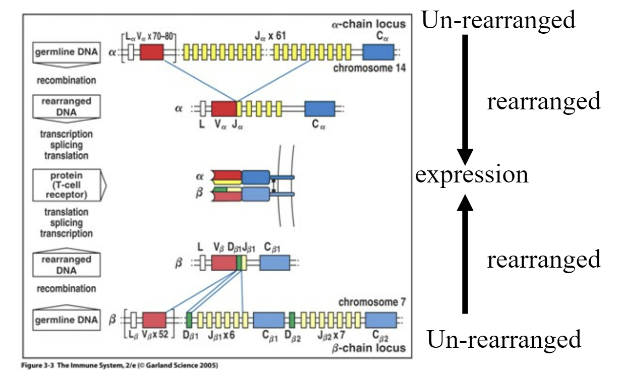 https://slideplayer.com/slide/5772702/  TCR 유전자는 흉선 (Thymus)에서 유전자 재배열이 일어난 후 발현된다.