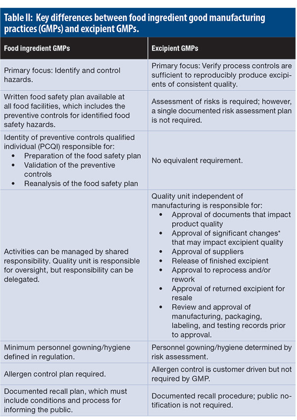 - - 식품 성분 (food ingredient) 제조는 21 CFR Part 117, Current Good Manufacturing Practice, Hazard Analysis, and Risk Based Preventative Controls for Human Food.또는